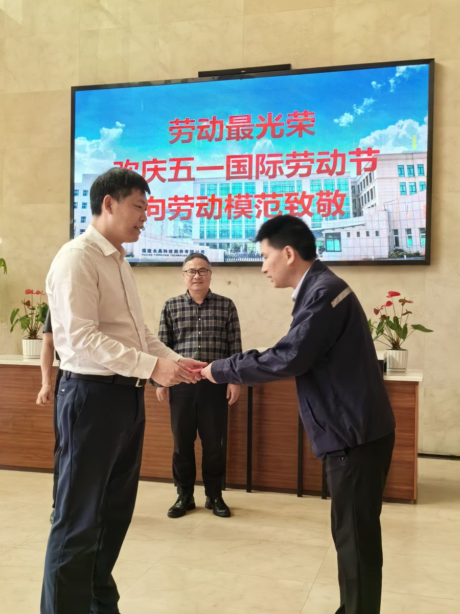 4月29日上午,在“五一”國際勞動節(jié)來臨之際,邵武市委書記陳顯卿一行蒞臨永晶科技慰問“五一勞動獎?wù)?rdquo;獲得者曹武亮,公司總經(jīng)理周國斌、副總經(jīng)理兼工會主席曾獻勛等公司管理層熱情接待并全程陪同慰問活動。