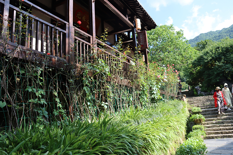 午后的陽(yáng)光灑在飛檐翹角的古建筑上,溪水潺潺,燈籠輕搖,高空索道穿云破霧,扶搖直上。隨著海拔升高,視野豁然開朗。腳下是翻滾涌動(dòng)的云海,如夢(mèng)似幻;遠(yuǎn)處是層巒疊嶂的翠峰,如詩(shī)如畫,穿梭于云霧之中,宛如置身仙境!